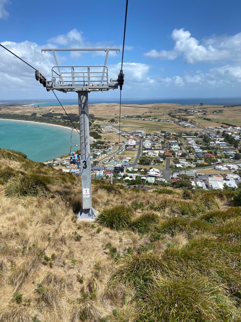 We then thought we’d do “The Nut”. The Nut is the remains of an ancient volcanic plug with a large, mostly flat surface that can be circumnavigated on foot (hence its original name, Circular Head). Two options for reaching the top of the nut – walk or chair lift (yep you guessed it chair lift it is). The short 2km walk around the top of The Nut is simply stunning. The views are breathtaking, with some of the viewing platforms taking you out “into space” – a kind of “Titanic moment” at each one.